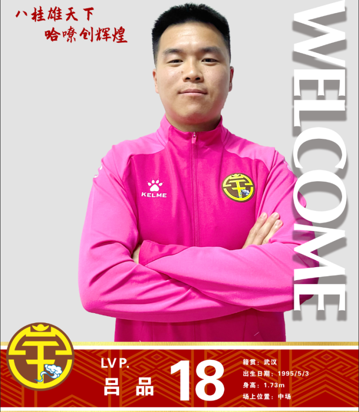 吕品,1995年5月3日出生于武汉,身高173cm,司职中场,申花青训出身,曾随申花精英梯队前往西班牙参加当地联赛。后先后租借加盟苏州东吴、淄博蹴鞠等队。去年以租借形式在广西平果哈嘹效力,为球队出场26次,打进3球。