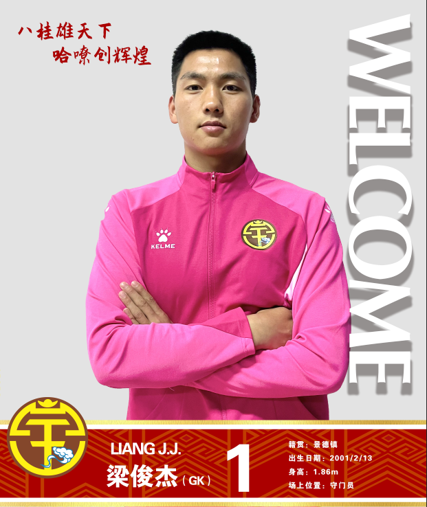 梁俊杰,2001年2月13日出生于江西景德镇,身高186cm,司职守门员,门线技术出色,反映迅捷,潜力巨大。上赛季作为主力守门员帮助中乙江西黑马青年保级成功。