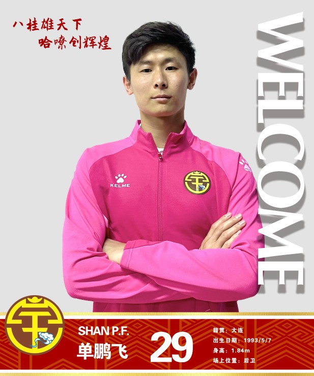 单鹏飞,1993年5月7日出生于大连,身高184cm,司职边后卫,曾经效力哈尔滨毅腾、大连阿尔滨等球队,中超中甲为大连人共出场117次。
