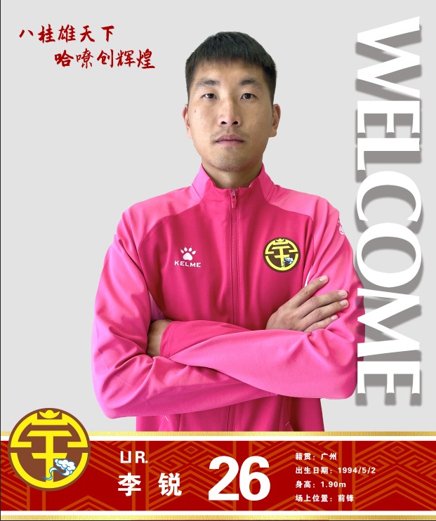 李锐,1994年5月2日出生于广东省惠州市,身高190cm,场上司职前锋,曾入选U-14国少队,曾在葡超布拉加俱乐部留洋。上赛季为南京城市出场24次,进4球,2助攻。2020赛季李锐曾经在广西效力一个赛季。