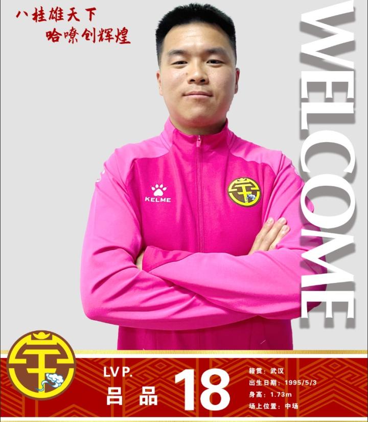 吕品,1995年5月3日出生于武汉,身高173cm,司职中场,申花青训出身,曾随申花精英梯队前往西班牙参加当地联赛。后先后租借加盟苏州东吴、淄博蹴鞠等队。去年以租借形式在广西平果哈嘹效力,为球队出场26次,打进3球。