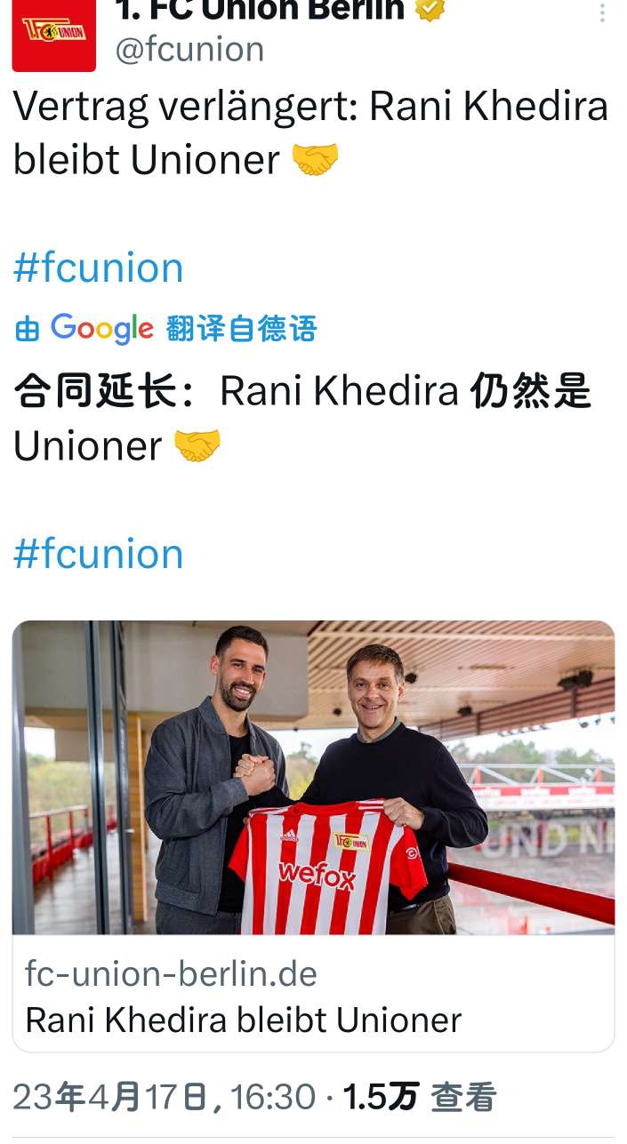 柏林联合官宣:今年夏天合同到期的球队中场拉尼-赫迪拉延长了他在柏林联合的合同。 柏林联合也学习了弗赖堡,没有公开合同年限。