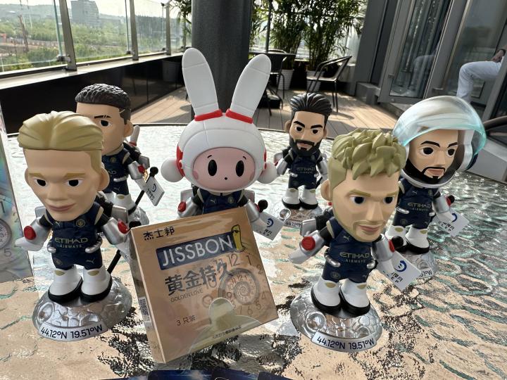 王牌化身拥有曼城官方授权,推出了曼城BLUE MOON(蓝月亮)系列盲盒,哈兰德、德布劳内和福登Money Ball手办,以及“探月萌兔曼步”系列套装礼盒。