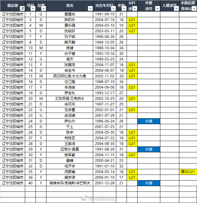 懂球帝首页>动态> 懂球号> 2023赛季中甲报名名单(4.20)——辽宁沈阳...