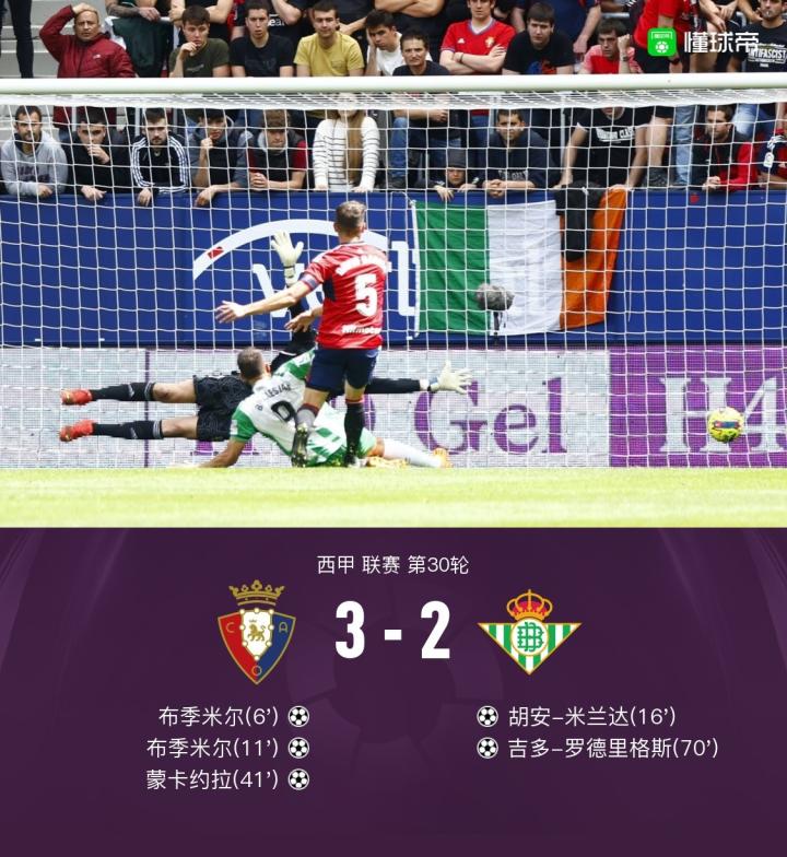 扫描下载懂球帝首页>动态> 奥萨苏纳3-2贝蒂斯,布季米尔双响,巴尔哈两助攻,吉多破门
