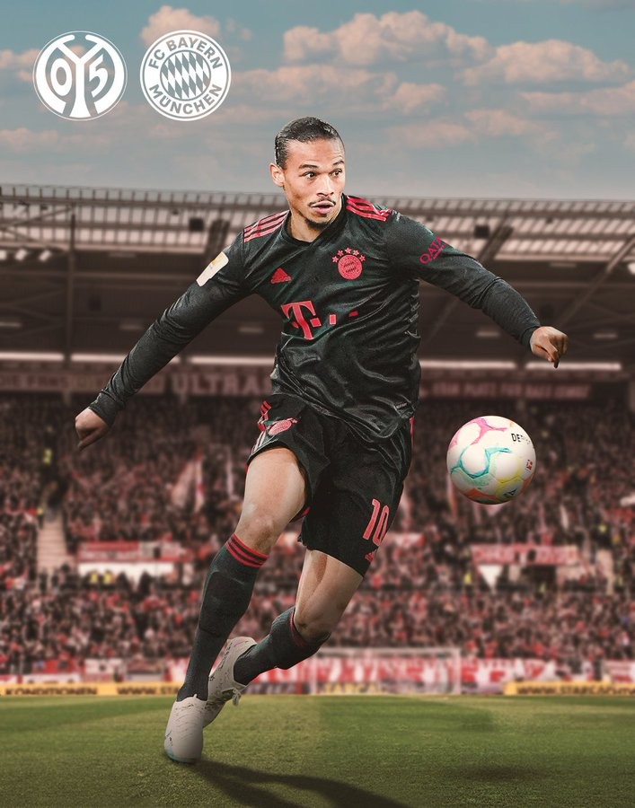 扫描下载懂球帝首页>动态> 拜仁战美因茨海报:萨内身着本赛季第三球衣单人出镜