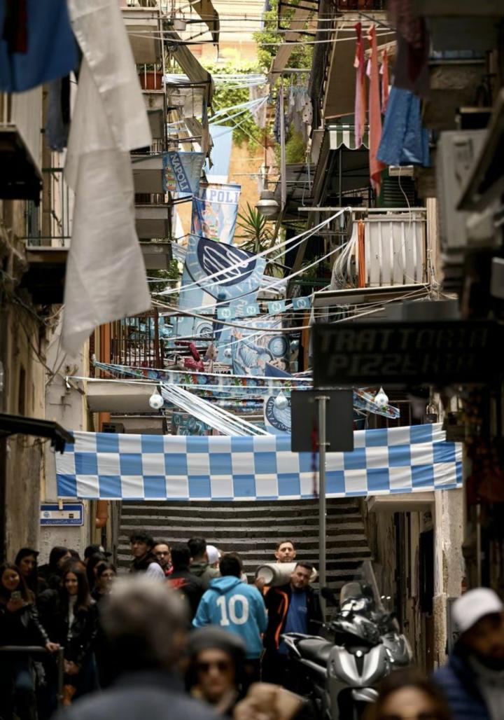 2023赛季的意大利甲级联赛虽然还没有结束,但是那不勒斯已经在积分榜上一骑绝尘,随着夺冠日的临近,那不勒斯的街头巷尾,从旗帜到纹身,已经开始装扮成蓝色的海洋。