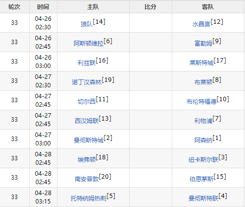 本轮过后最新积分榜及下轮联赛对阵如下: