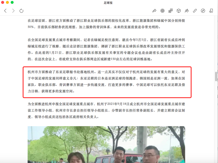 去年8月1日,足球报曾经在题为《杭州足球:最好的发展契机已经到来》的专题报道中提到“东亚足联秘书处落地杭州”。