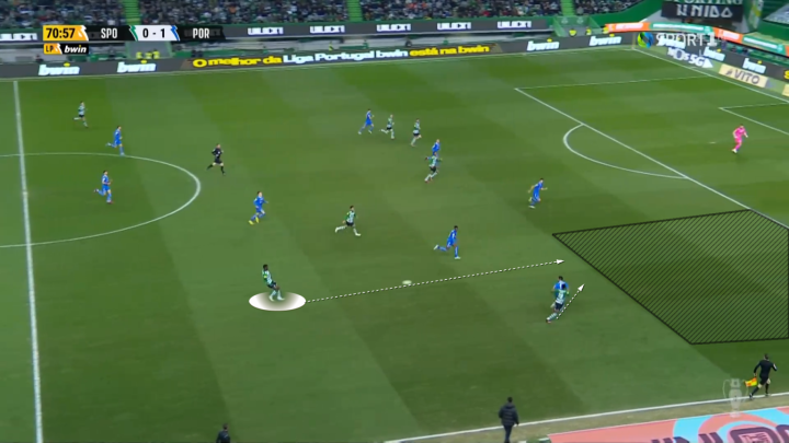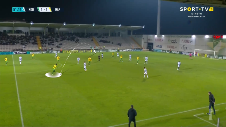 他在后场支配球权时喜欢观察全局,在发现对方的后防空当时,能够利用纵向的长传球打穿对方的前场防线。在把球交给队友之后,迪奥曼德有时甚至会前插跑位,为队友提供传球选择,在定位球进攻中也能看到他成功争顶。也就是说,迪奥曼德具备相当程度的发起进攻和参与进攻的意识和能力,这也难怪许多英超球队,包括曼城和阿森纳,都曾对迪奥曼德有意。