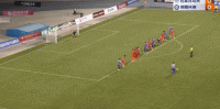 第45+3分钟,赵明剑主罚任意球兜出无解世界波弹楣入网,石家庄1-0领先!