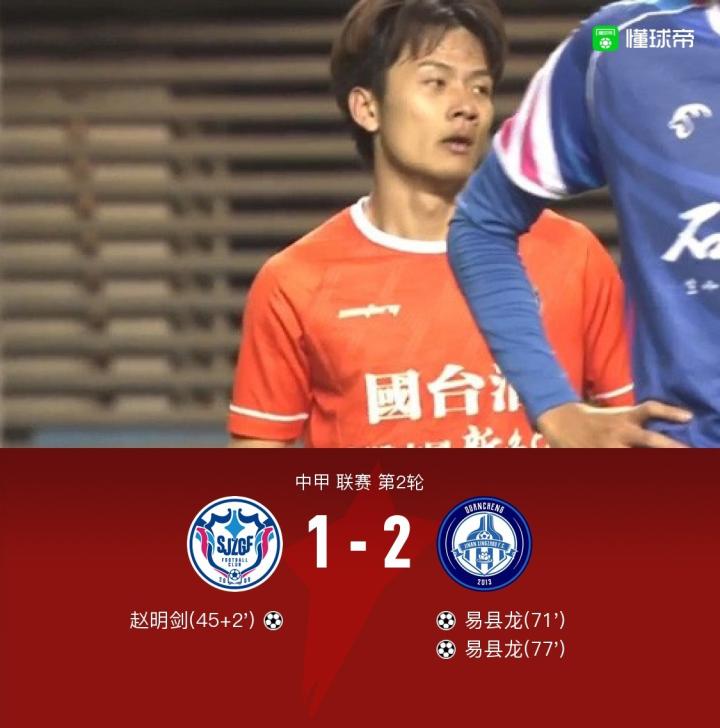 北京时间4月29日19:30,中甲第2轮继续进行,石家庄功夫坐镇主场石家庄裕彤国际体育中心迎战济南兴洲,本场主裁判为马力。上半场,赵明剑任意球世界波破门。下半场,易县龙连下两城上演梅开二度扭转乾坤。最终,石家庄主场1-2遭济南逆转。
