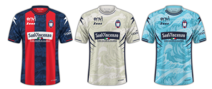 赞助球队不多的希腊品牌zeus,越发偏向于高质量创作,在意大利前三级就赞助了萨勒尼塔纳,弗洛西诺内和克罗托内。已经身在意丙的克罗托内的三件球衣都运用了海浪暗纹,与其所在的伊奥尼亚海滨相搭配。