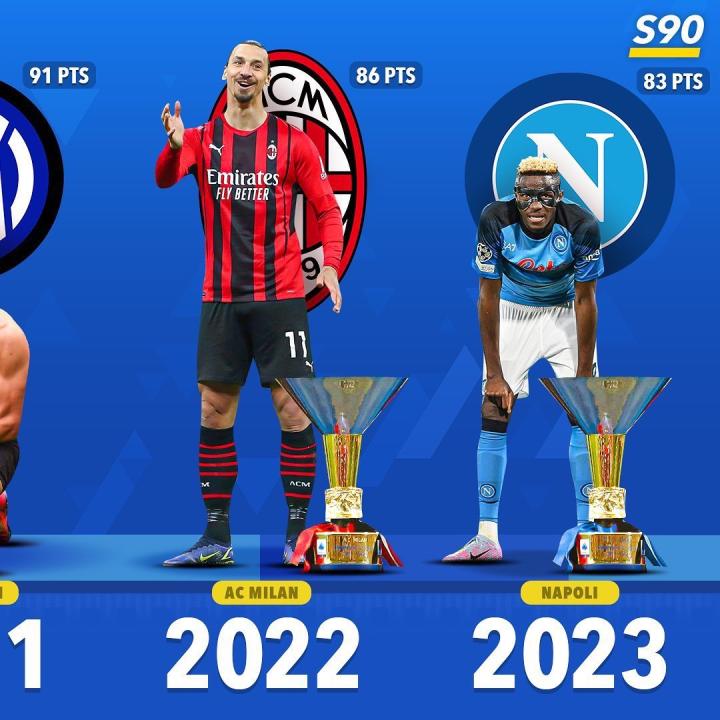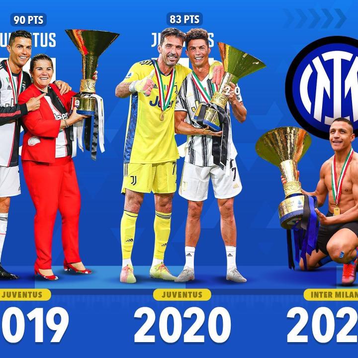 扫描下载懂球帝首页>动态> 懂球号> 2017年以来的意甲冠军:尤文图斯国际米兰AC米...
