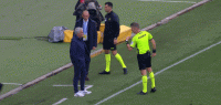第48分钟,穆帅不满判罚,随后面对主裁笑而不语。