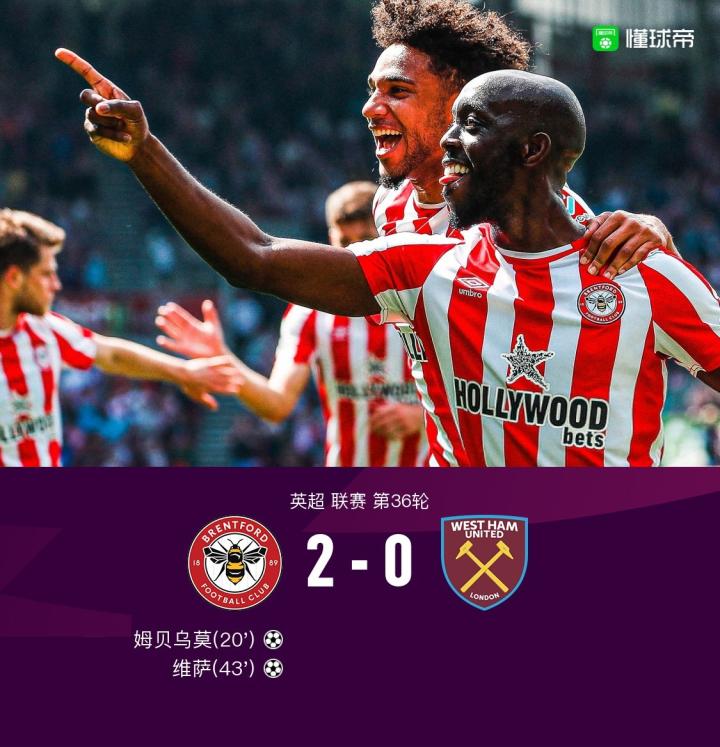 扫描下载懂球帝首页>动态> 布伦特福德2-0西汉姆联,姆贝乌莫推射破门,维萨头球建功