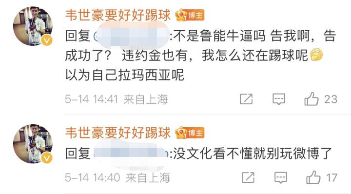 扫描下载懂球帝首页>动态> 韦世豪对线球迷:鲁能告我怎么没成功?以为自己拉玛西亚呢