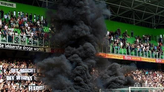 官方消息,荷甲第32轮格罗宁根主场对阵阿贾克斯的比赛因现场的浓烟干扰而被中断。