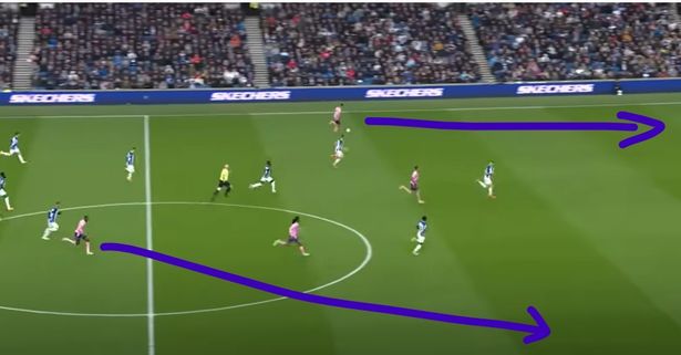布莱顿试图在中场压迫,两名前锋后撤创造一个小禁区