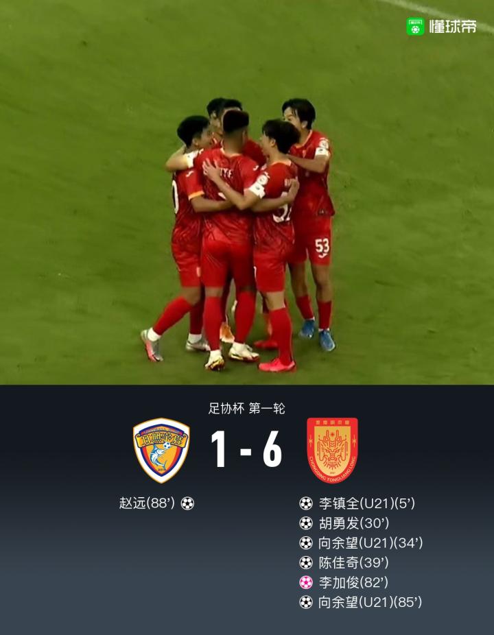 扫描下载懂球帝首页>动态> 重庆铜梁龙6-1日照宇启晋级第二轮,向余望双响,胡勇发破门
