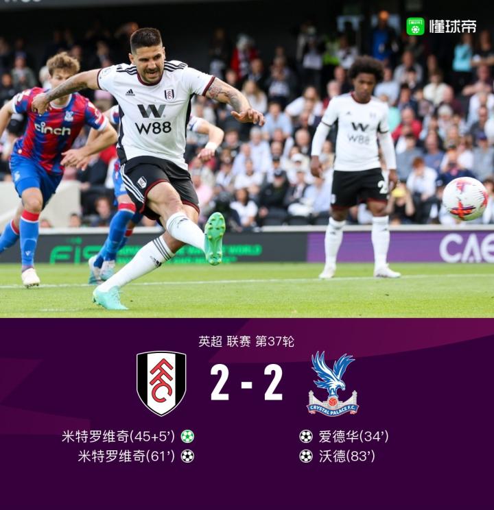 扫描下载懂球帝首页>动态> 富勒姆2-2水晶宫,米特罗维奇双响,爱德华、沃德建功