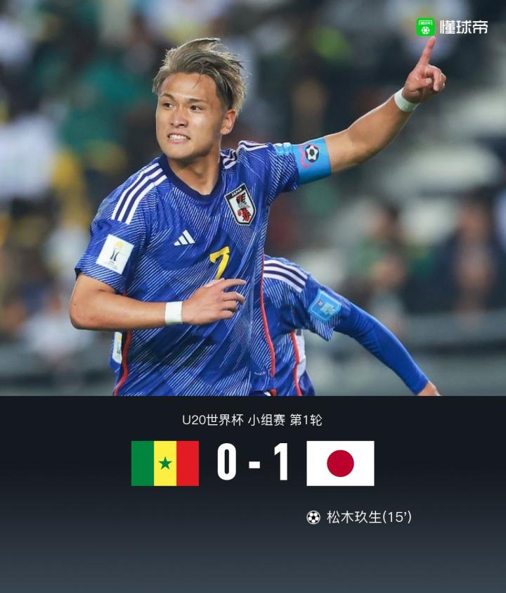 北京时间5月22日5:00,U20世界杯小组赛第1轮,塞内加尔U20对阵日本U20。上半场,松木玖生远射破门,桑巴-迪亚洛进球被吹。下半场,佐野航大抽射被扑,熊田直纪打门踢偏,最终,U20塞内加尔0-1日本U20。