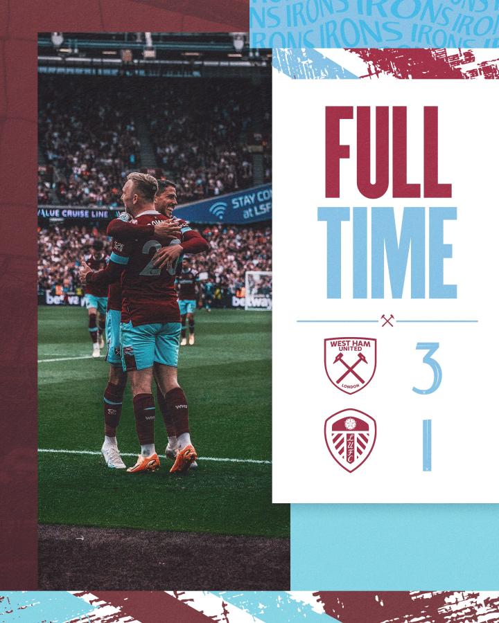 扫描下载懂球帝首页>动态> 懂球号> 全场结束|西汉姆联 3-1 利兹联赖斯、鲍文主导...