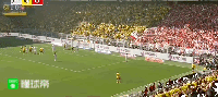 第25分钟,两球落后,镜头给到摇头的多特球迷。