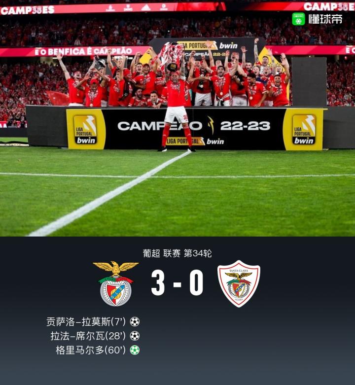 希望你下赛季在德甲好好的,这场比赛每一个人在我心里都是满分!比赛打到70分钟的时候我的眼里就下来了,这是我来葡萄牙看到的本菲卡第二座联赛冠军,希望未来能看到更多!