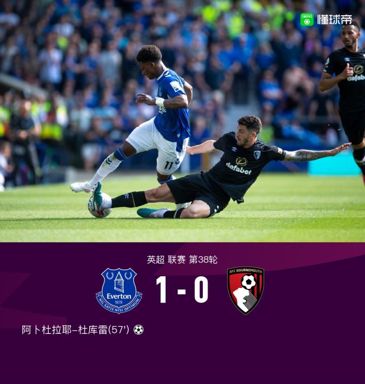 扫描下载懂球帝首页>动态> 埃弗顿1-0伯恩茅斯力压莱斯特城保级,杜库雷世界波制胜