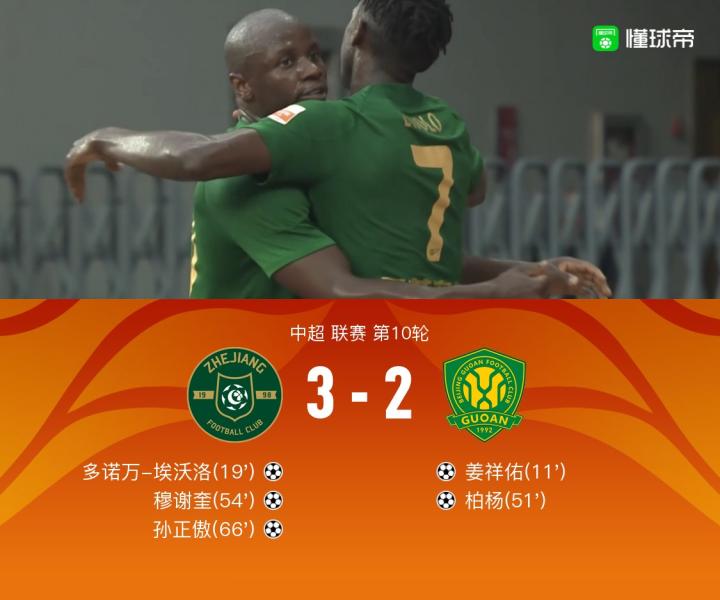 第66分钟,李提香再次角球助攻,孙正傲头槌再下一城,浙江3-2国安!