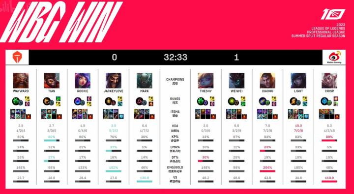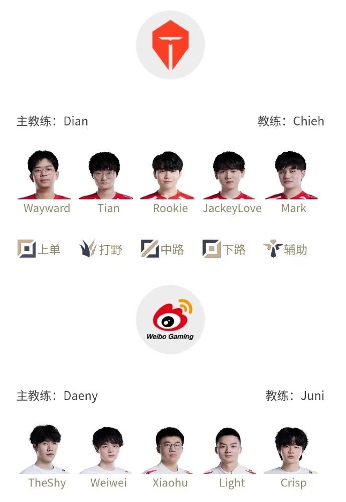 WBG首发:、TheShy、Weiwei、Xiaohu、 Light、Crisp