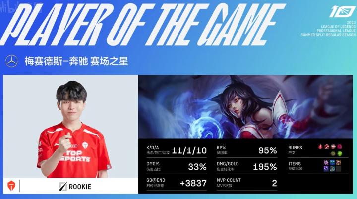 第14分钟,Rookie妮蔻绕后,Light泽丽阵亡,TES拿到先锋。