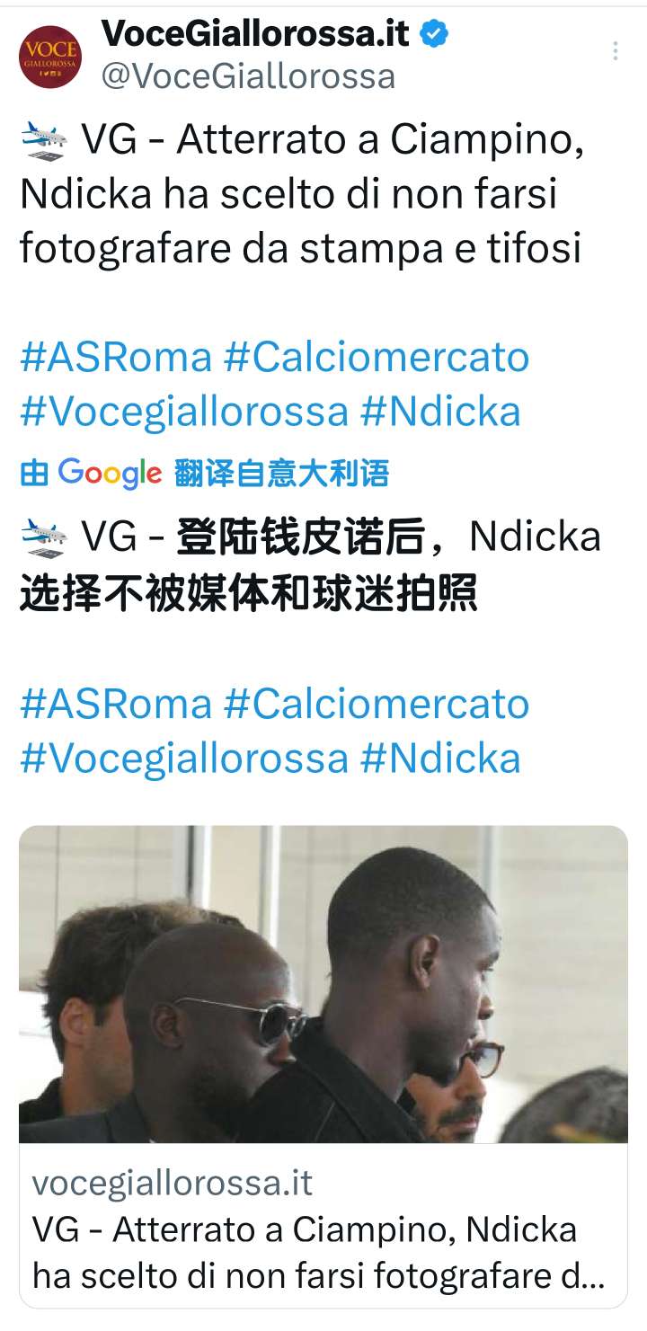 扫描下载懂球帝首页>动态> 懂球号> VG消息,恩迪卡降临罗马机场的时候拒绝现场媒体近...