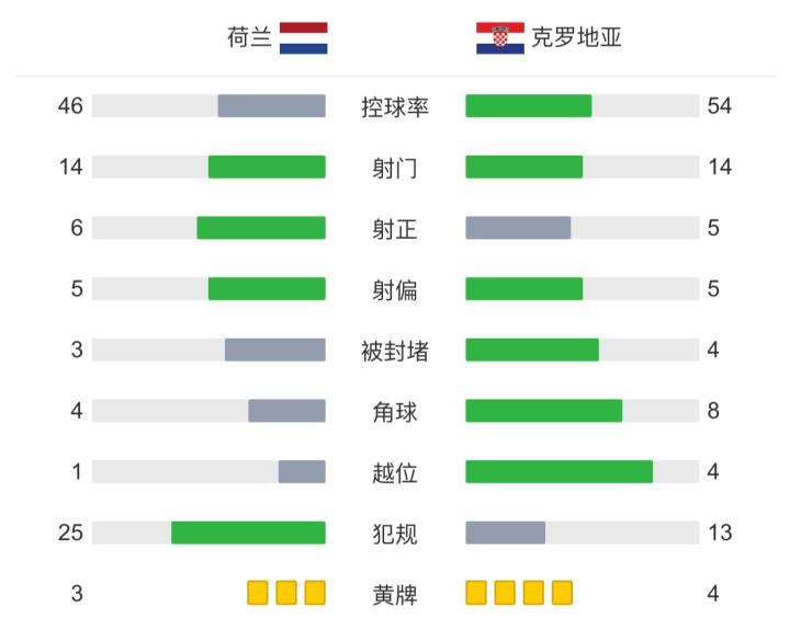 看了比赛的朋友都会发现,荷兰上下半场就是两只球队,上半场利用前场压迫和边路冲击踢得克罗地亚很难受,后防也稳没出什么问题,利用对方上抢失误,后防线空虚打进一球,看了上半场感觉克罗地亚没机会了。可一到下半场荷兰就开始苟起来了,克罗的亚进攻开始变得顺畅,莫德里奇的串联开始发挥作用,比分一扳平,年轻球队的心浮气躁就显露无疑,进攻踢到哪算哪,缺乏创造力!踢踢弱队还行,强强对话还是棋差一招!慢慢调整努力吧!最后恭喜老辣稳健的克罗地亚拿下胜利!
