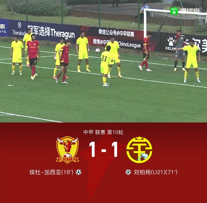 扫描下载懂球帝首页>动态> 九牛1-1终结广西联赛6连胜,埃杜-加西亚破门,刘柏杨扳平