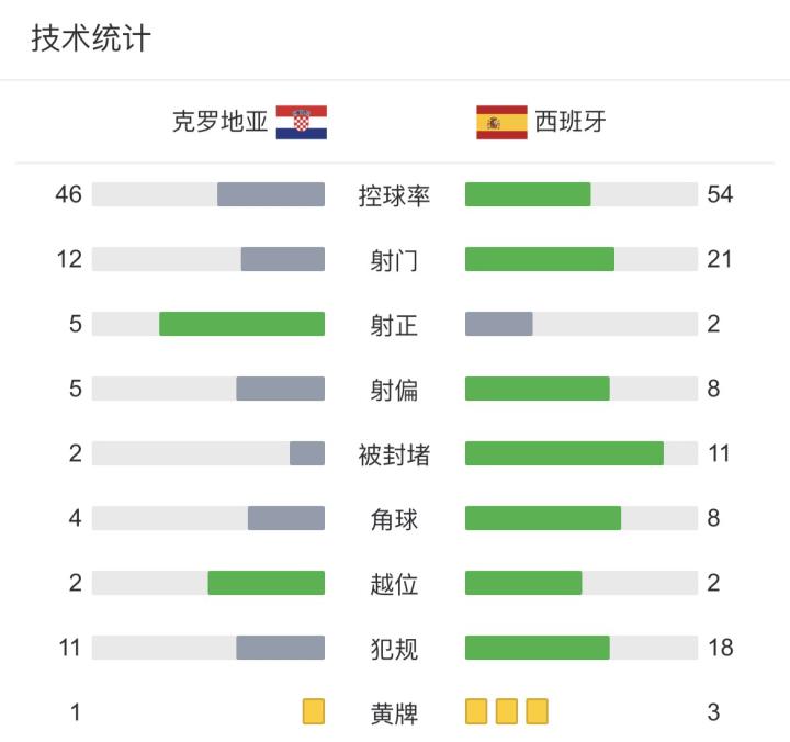 西班牙首发:23-乌奈-西蒙、22-赫苏斯-纳瓦斯(97'2-卡瓦哈尔)、3-勒诺尔芒(78'4-纳乔)、14-拉波尔特、18-阿尔巴、16-罗德里、8-法比安-鲁伊斯(78'6-梅里诺)、10-阿森西奥、9-加维(87'21-奥尔莫)、15-耶雷米-皮诺(66'12-法蒂)、7-莫拉塔(66'20-何塞卢)