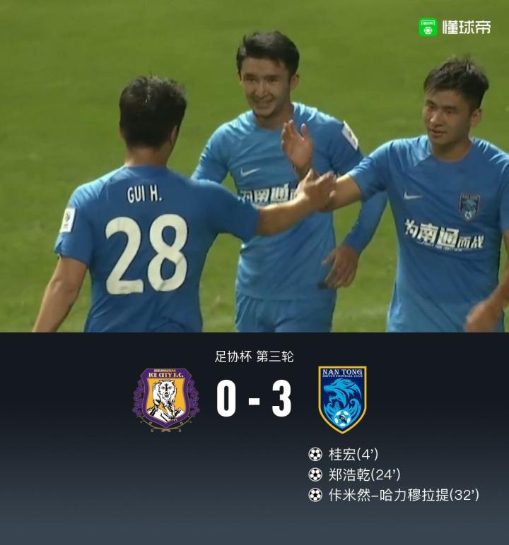 北京时间6月24日19:30,足协杯第三轮继续进行,黑龙江冰城坐镇哈尔滨国际会展中心体育场迎战南通支云,本场主裁判为孙盛宇。上半场,郑浩乾传射建功,桂宏与佧米然分别破门。下半场,埃里克斯进球被吹。最终,南通3-0轻取黑龙江,晋级足协杯16强,1/8决赛将战武汉三镇。