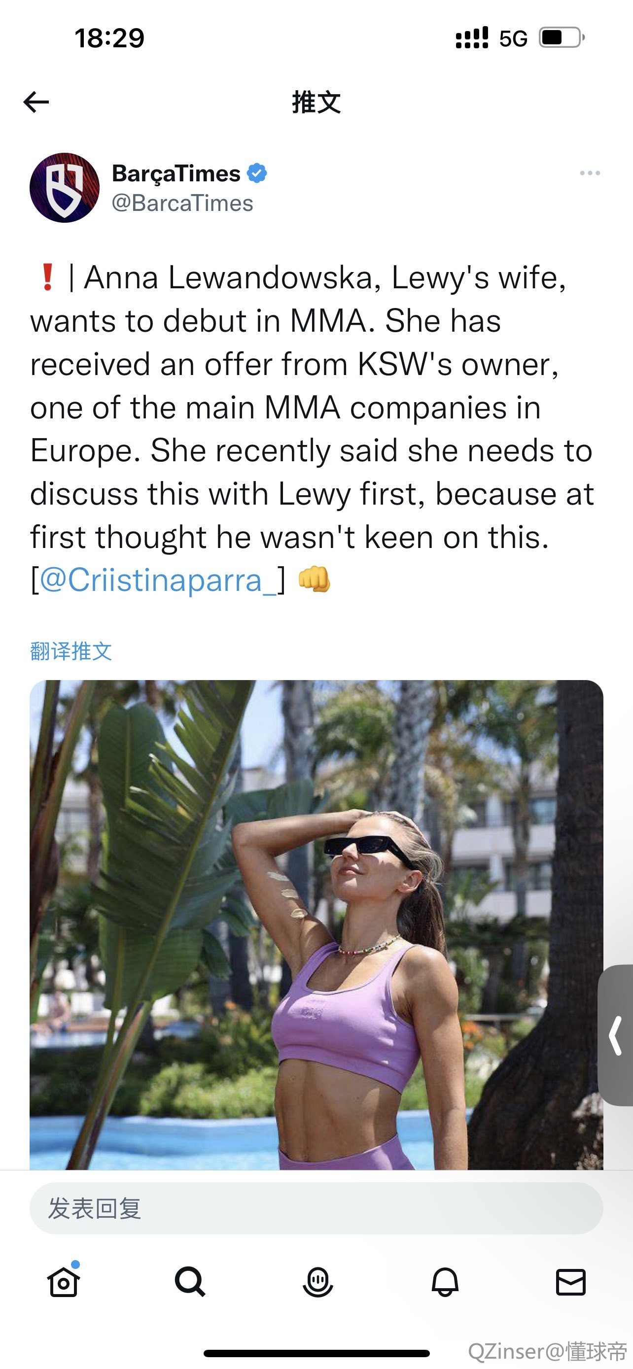 扫描下载懂球帝首页>动态> 莱万妻子有意参加MMA综合格斗比赛,但莱万对此并不支持