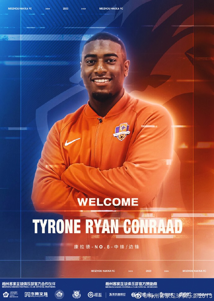 梅州客家官方宣布,荷兰籍前锋康拉德加盟球队。