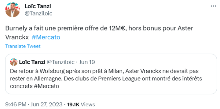 扫描下载懂球帝首页>动态> 懂球号> 记者Loïc Tanzi报道,伯恩利以1200万...