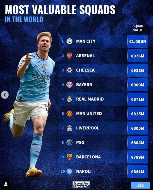 扫描下载懂球帝首页>动态> 俱乐部阵容总身价排名:曼城第一,阿森纳第二,切尔西第三