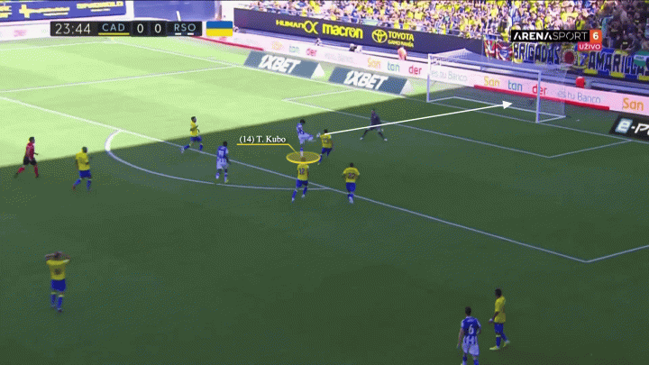 久保建英上赛季西甲9个进球中的第一球来自客场对阵加迪斯的比赛。