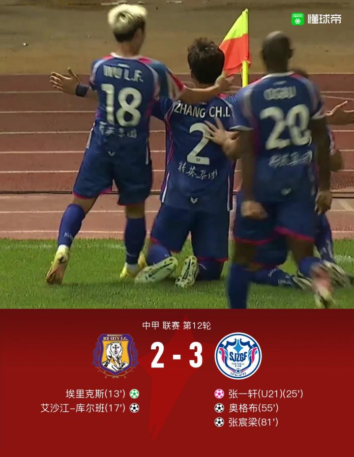 北京时间7月1日19:30,中甲第12轮,黑龙江冰城主场对阵石家庄功夫。上半场埃里克斯造点,亲自操刀主罚命中,随后艾沙江禁区内迎球赶上劲射破门扩大比分,之后张一轩回传,叶尔杰提停球失误送乌龙球。下半场奥格布禁区内右脚调整,左脚凌空抽射破门扳平比分,之后丁海峰开出角球,张宸梁后点包抄将球用大腿挡进球门反超比分。全场结束,石家庄3-2逆转黑龙江。