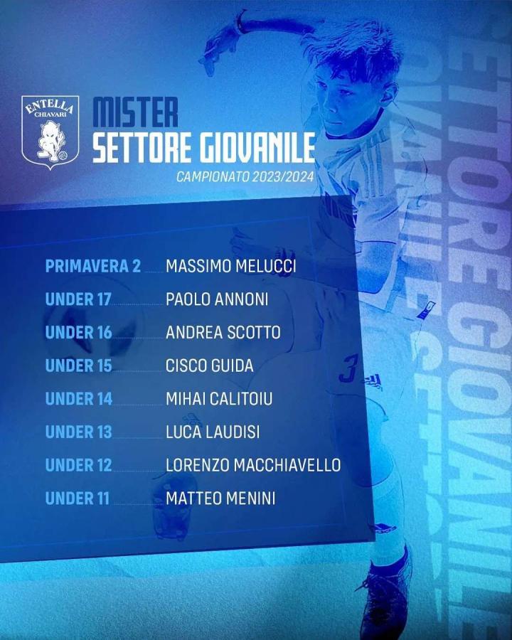 其中,Laudisi、Menini都是entella旧将,都在未成年的年纪便完成了一线队首秀(分别在08-09 98-99赛季),此外Scotto年少时是entella青年队极具天赋的球员,虽然遗憾没有为一线队效力,但在教练生涯里分别带entellaU19(09-10)和U16(22-23)拿到过全国冠军