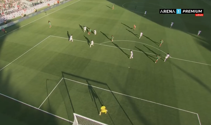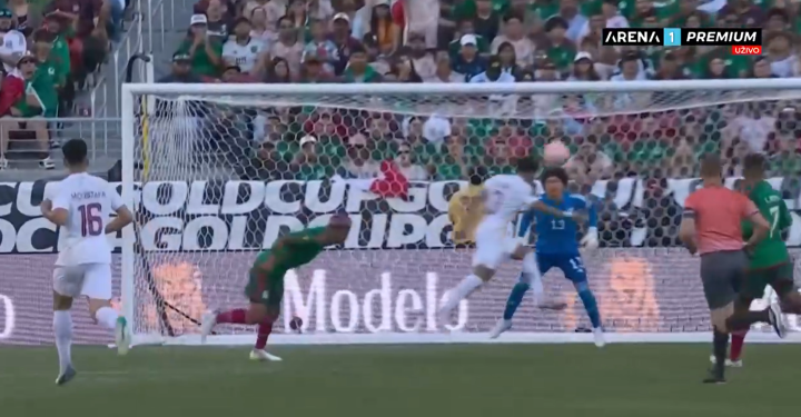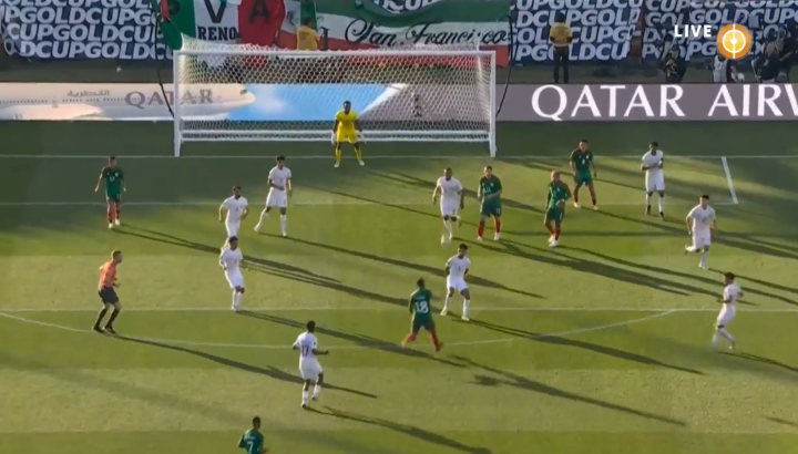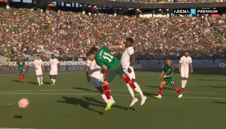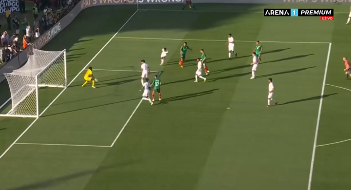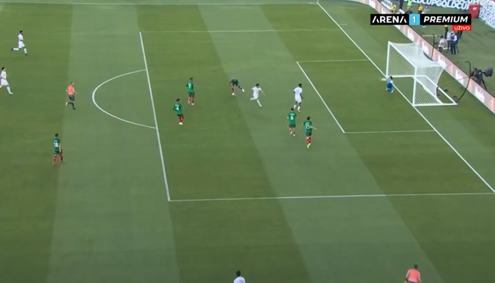 第70分钟,墨西哥16号莱内兹送出传中,桑蒂亚戈·希门尼斯面对巴沙姆,一脚推射,球偏出远端立柱,缓缓滚出边线。