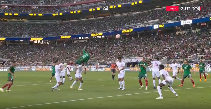 第35分钟,墨西哥开出角球,埃德松·阿尔瓦雷斯头球顶高。