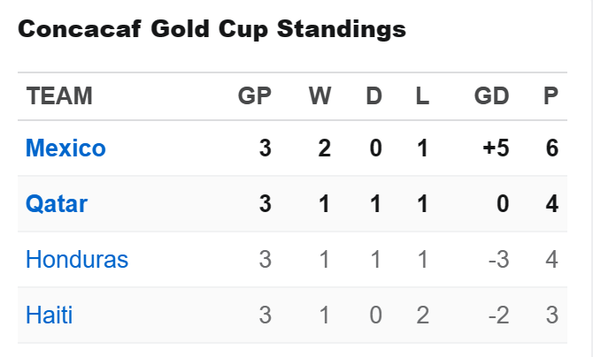 另一场比赛,洪都拉斯2:1逆转海地,卡塔尔在和洪都拉斯同积4分的情况下,以净胜球优势晋级!海地、洪都拉斯出局。
