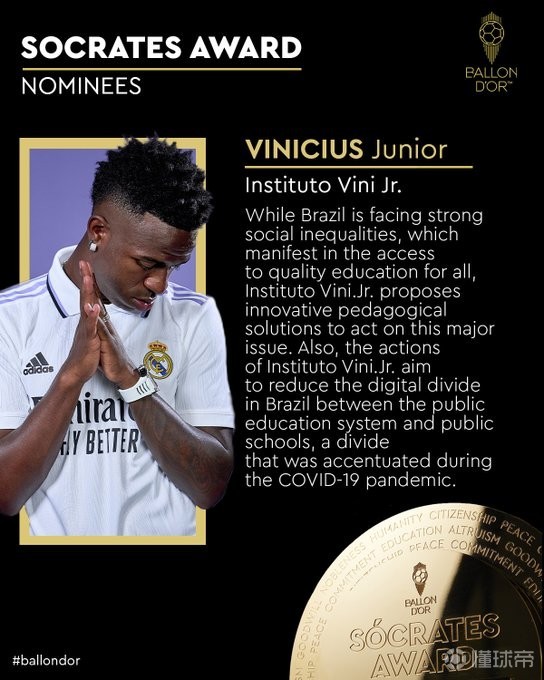 扫描下载懂球帝首页>动态> 2023苏格拉底奖候选:维尼修斯、拉什福德、吕迪格等5人入围