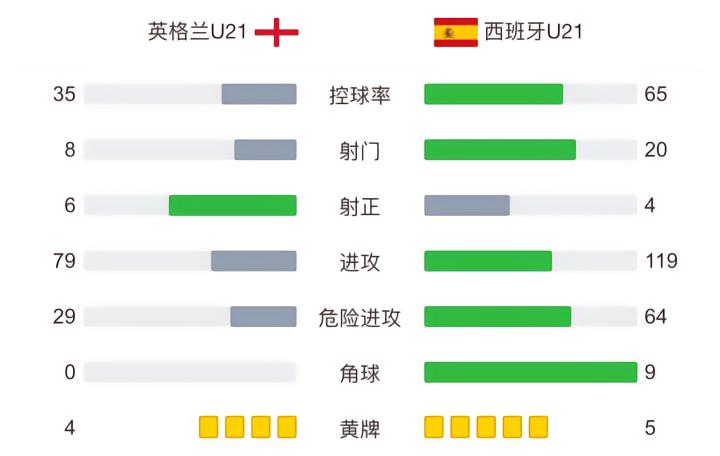 西班牙U21首发:1-阿尔瑙-特纳斯、2-维克托-戈麦斯(73'11-巴雷内切亚)、14-艾托尔-帕雷德斯、5-帕切科、3-胡安-米兰达、6-安东尼奥-布兰科(83'21-塞尔希奥-卡梅略)、16-巴埃纳(59'19-奥罗斯)、8-桑切特(59'18-贝加)、10-罗德里-桑切斯(59'7-罗德里戈-里克尔梅)、17-塞尔希奥-戈麦斯、9-阿韦尔-鲁伊斯